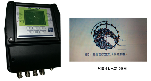 Sound 1電耳用于檢測球磨機噪音。球磨機噪音強弱根據物料及球磨機裝料量而變化。電耳由高靈敏度傳聲器組成,它安裝在球磨室附近,接近鋼球的碰撞點部位。傳聲器的海綿保護層位于兩排螺栓之間,盡量靠近磨機殼體。后面4-5cm為傳聲器頭,由覆有薄的塑料膜細網絡的海綿層保護。因此,嵌在海綿層內的傳聲器與廠區內干擾噪音隔絕。保護網防止粉塵進入,因為粉塵堆積將影響電耳的靈敏度。
